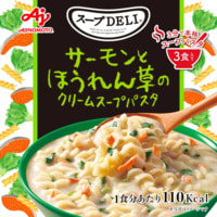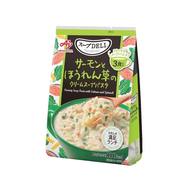 Ajinomoto "Deli" Сливочный суп быстрого приготовления с пастой, лососем и шпинатом, 3 порции.