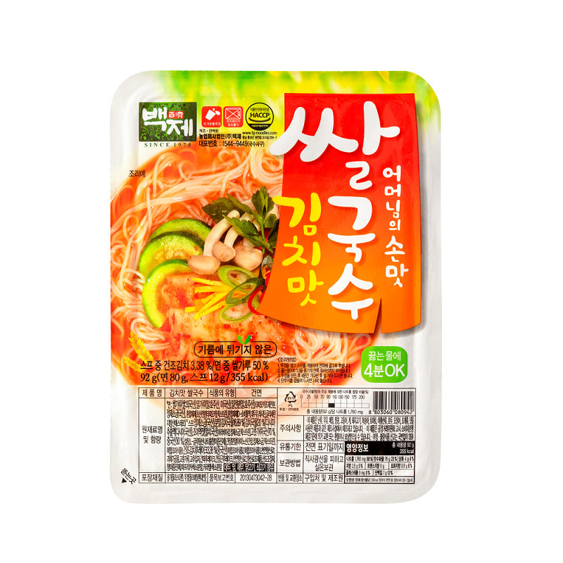 Baekje "Rice Noodle With Kimchi Flavour" Лапша быстрого приготовления со вкусом кимчи, 92 г.