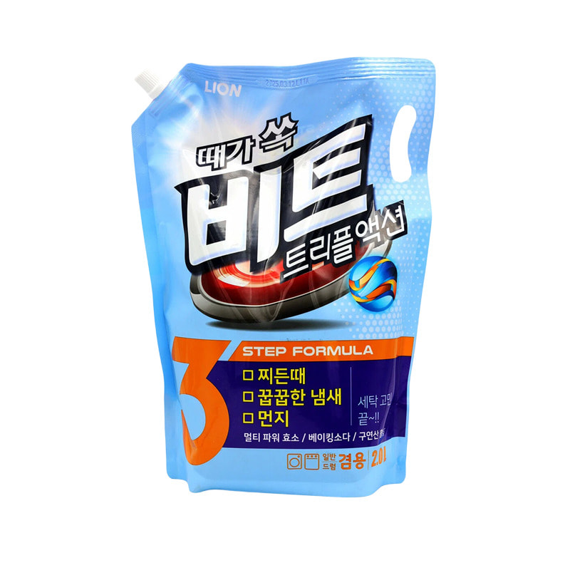 CJ Lion "Beat Triple Action" Концентрированное жидкое средство для стирки с ферментами, содой и лимонной кислотой - тройного действия, сменная упаковка, 2 л.