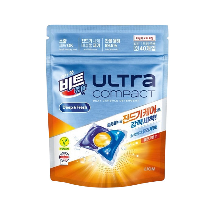 CJ Lion "Ultra Compact Anti Mite Care" Капсулы для стирки белья с защитой цвета, против пылевого клеща, аромат хлопка, 40 шт.