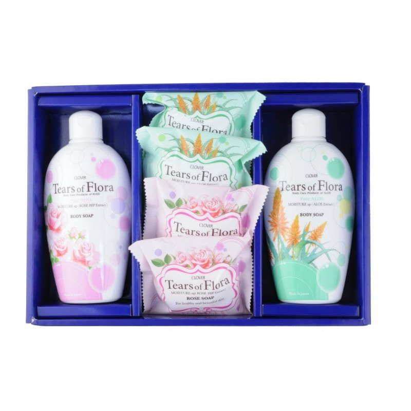 Clover "Flora Set Флора и Алоэ" Подарочный набор мыло туалетное косметическое и жидкое мыло для тела, 70 г х 4 шт, 250 мл х 2 шт.