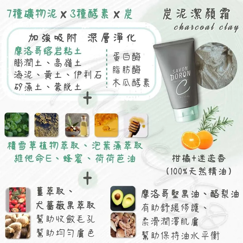 Состав: вода, глицерин, миристиновая кислота, гидроксид калия, стеариновая кислота, лауриновая кислота, PEG-75, бентонит, экстракт центеллы азиатской, марокканская лавовая глина, древесный уголь, каолин, морской ил, лесс, иллит, диатомит, монтмориллонит, морская вода, папаин, протеаза, липаза, экстракт аскофиллума узловатого, BG, токоферол, масло косточек аргании колючей, масло авокадо, мед, пчелиный воск, экстракт корневища имбиря, масло листьев розмарина, масло семян жожоба, экстракт дикой розы, экстракт плодов грейпфрута, масло кожуры грейпфрута, масло плодов бергамота, жидкость для ферментации соевого молока, йогуртовая жидкость (молоко), этидроновая кислота, тетранатрия этидронат, поликватерниум-7, динатрийфосфат, фосфат калия, глицерилстеарат, декстрин, феноксиэтанол.