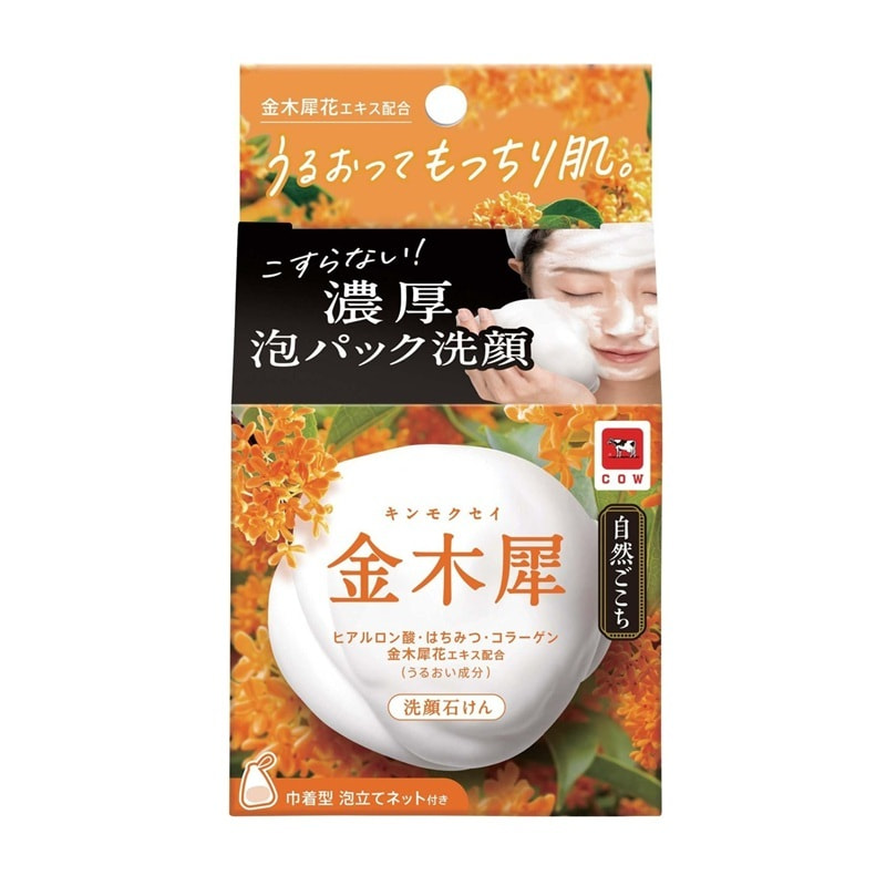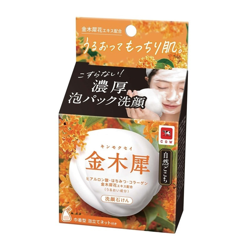 COW "Shizen Gokochi" Мыло для лица с сеточкой для создания пены, с экстрактом османтуса, гиалуроновой кислотой и коллагеном, 80 г.