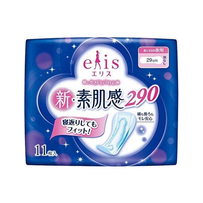 Daio Paper Japan "Elis New skin Feeling" Ночные классические гигиенические прокладки с мягкой поверхностью, без крылышек, макси+, длина 29 см, 11 шт.