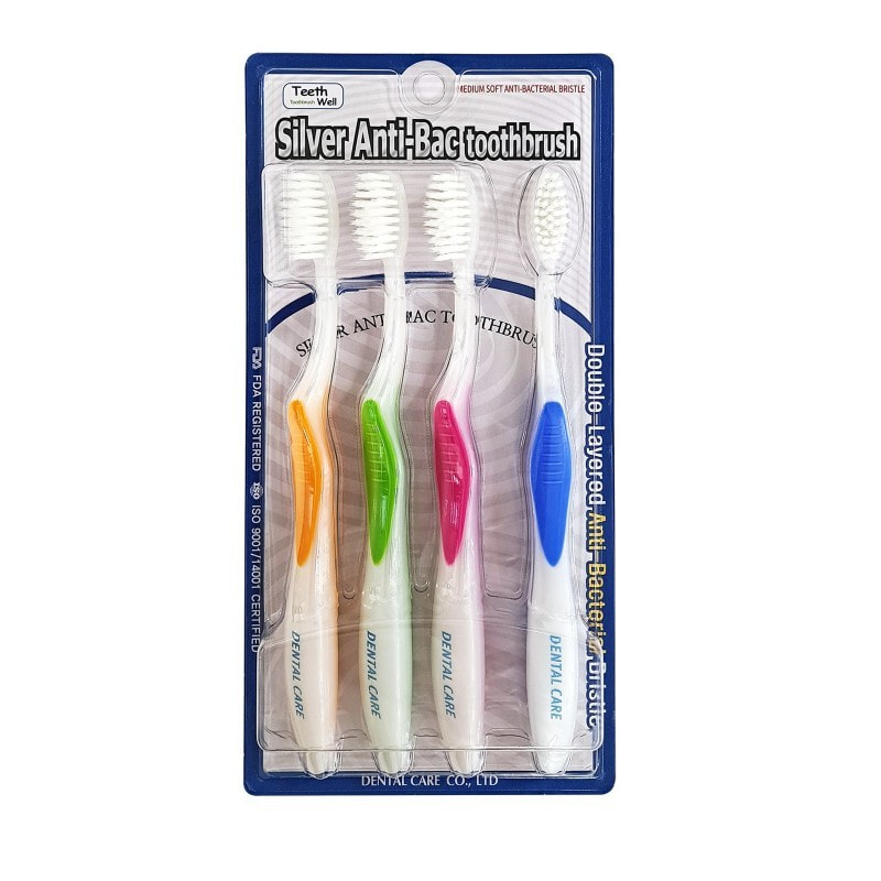Dental Care "Nano Silver Toothbrush Set" Набор: Зубная щетка c наночастицами серебра и сверхтонкой двойной щетиной, средней жесткости и мягкой, 4 шт.