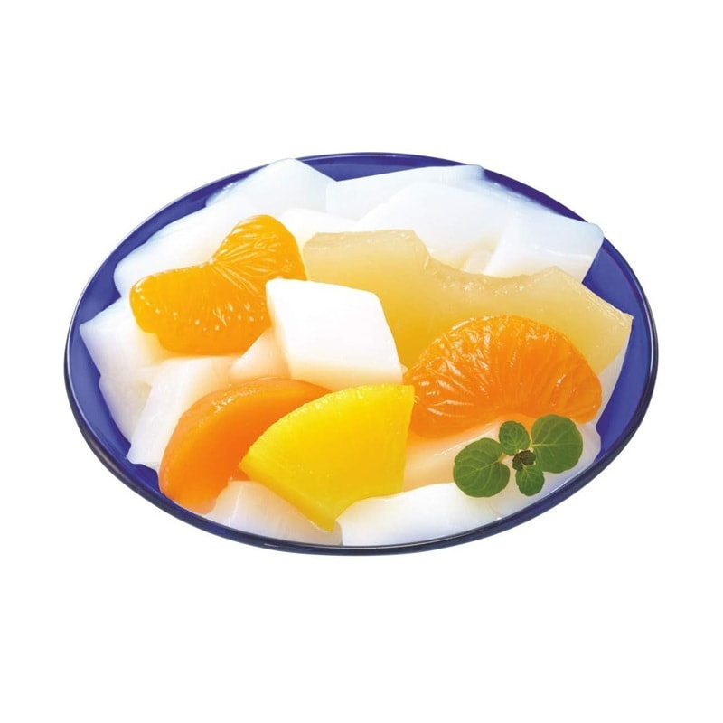 Состав: агар, фрукты (желтый персик, ананас, мандарин), сахар (кукурузный сироп с высоким содержанием фруктозы), агар, абрикосовая глазурь/желирующий агент, лимонная кислота, лактат кальция, ароматизатор, эмульгатор, стевия.