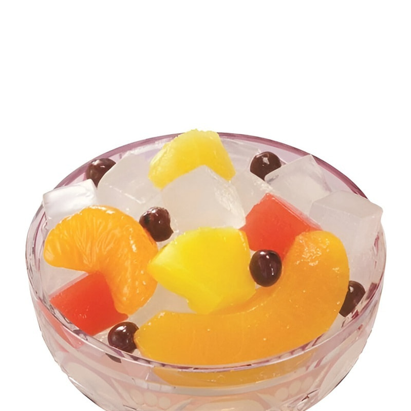 Состав: агар, фрукты (желтый персик, ананас, мандарин), сахар (кукурузный сироп), красный горошек, лимонная кислота, желирующий агент (полисахаридный загуститель), лактат кальция, ароматизатор, подсластитель (сукралоза, ацесульфам калия).