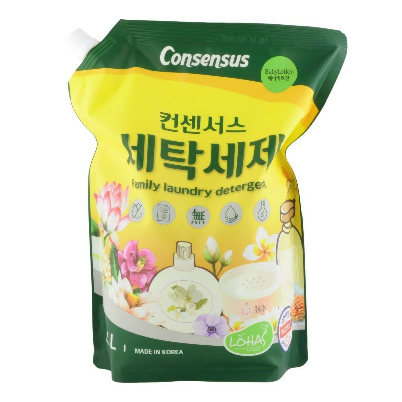 HB Global "Consensus Liquid Laundry Detergent" Жидкое средство для стирки для всей семьи, аромат детского лосьона, сменная упаковка, 2.1 л.