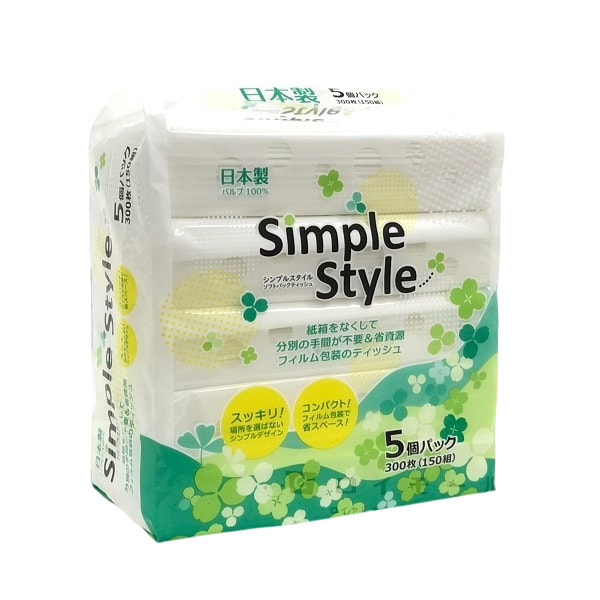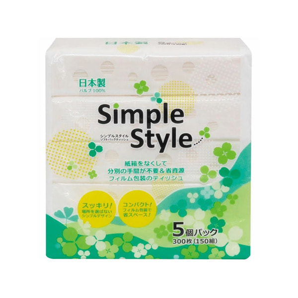 Ideshigyo "Simple Style" Двухслойные бумажные салфетки, произведены на воде с горы Фудзи, 150 шт. х 5 пачек.