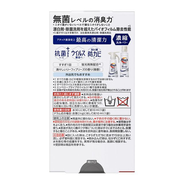 KAO "Attack Zero" Жидкое средство для стирки, суперконцентрат, для любых типов стиральных машин, дорожный формат, 7 пакетиков х 10 г.