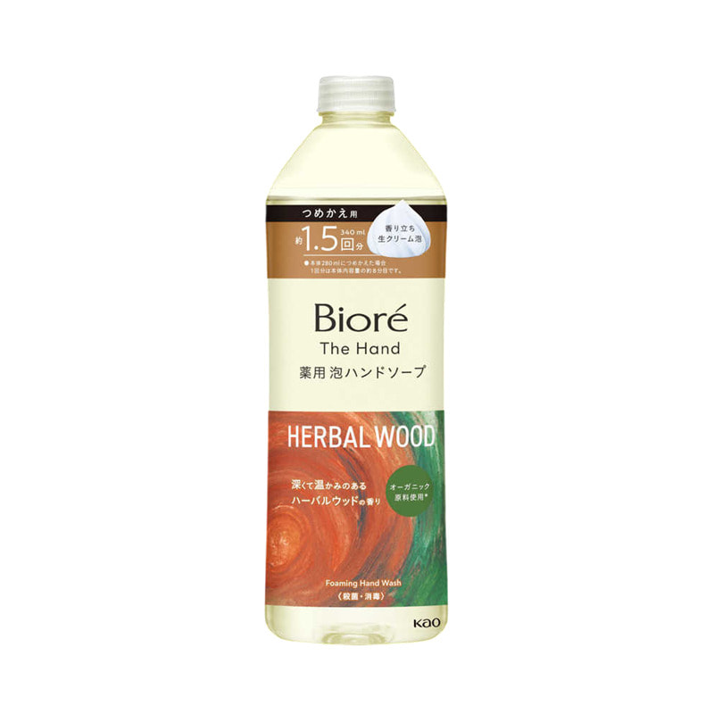 KAO "Biore the Hand" Жидкое мыло-пенка для рук с гиалуроновой кислотой и глубоким травянисто-древесным ароматом, сменная упаковка, 340 мл.
