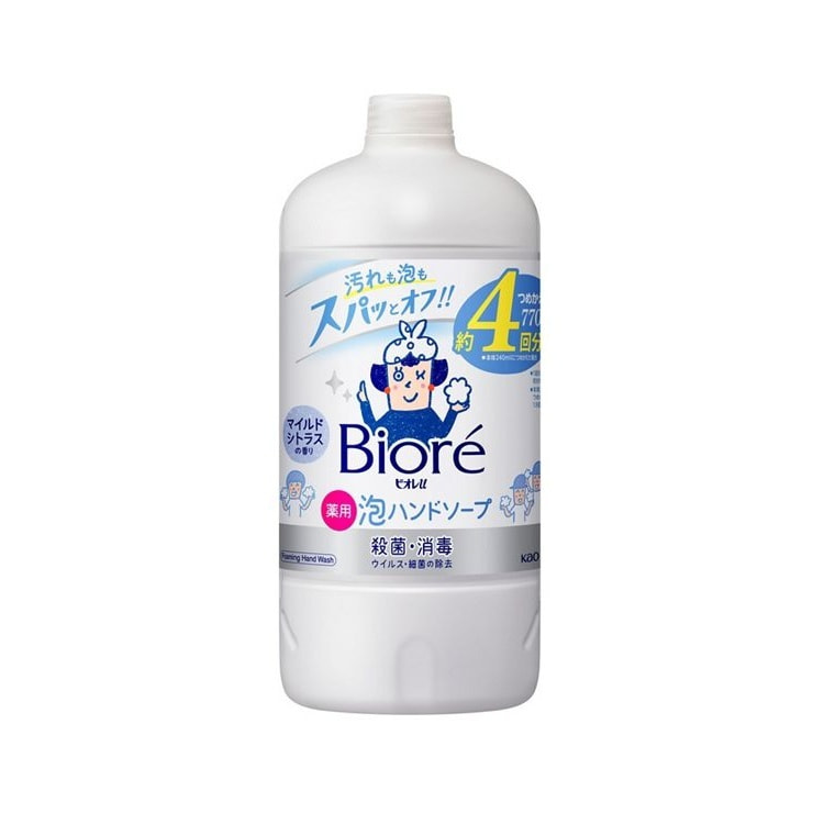 KAO "Biore U Foaming Hand Soap" Мыло-пенка для рук с антибактериальным эффектом, с легким цитрусовым ароматом, сменная упаковка, 770 мл.