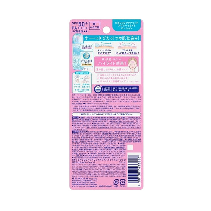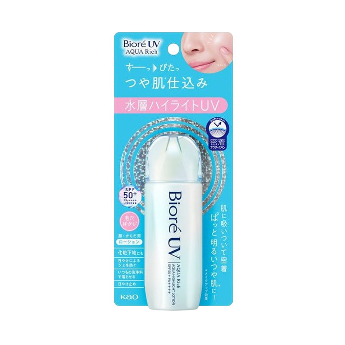 KAO "Biore UV Aqua Rich Aqua Highlight Lotion" Солнцезащитный водостойкий лосьон для кожи лица, эффект глянцевой кожи, 70 мл.