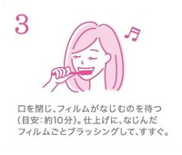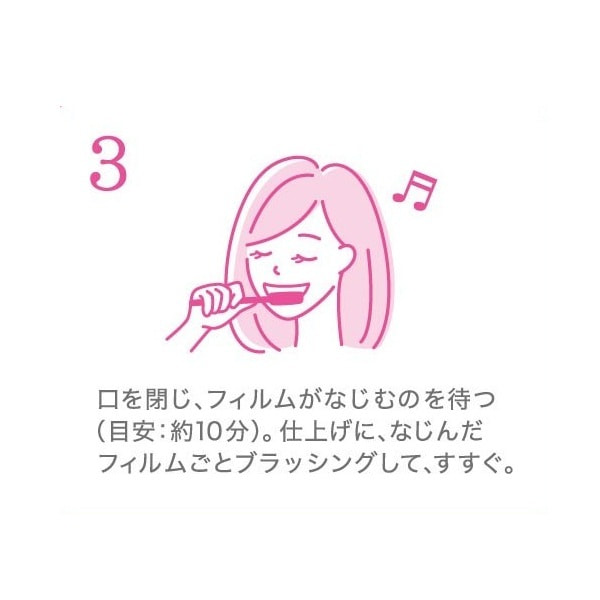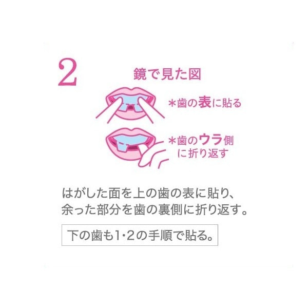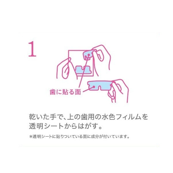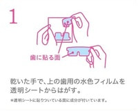 Способ применения: использовать сухими руками. Снять плёнку с подложки и наклеить на сухие зубы внешней стороной, затем загнуть остаток на внутреннюю сторону. Наложить верхнюю и нижнюю плёнку. Закрыть рот и подождать около 10 минут, затем почистить зубы вместе с плёнкой и прополоскать водой.