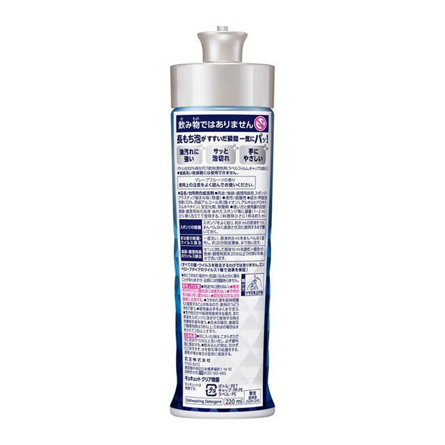 KAO "CuCute" Дезинфицирующее средство с лимонной кислотой для мытья посуды, овощей и фруктов, с ароматом грейпфрута, 220 мл.