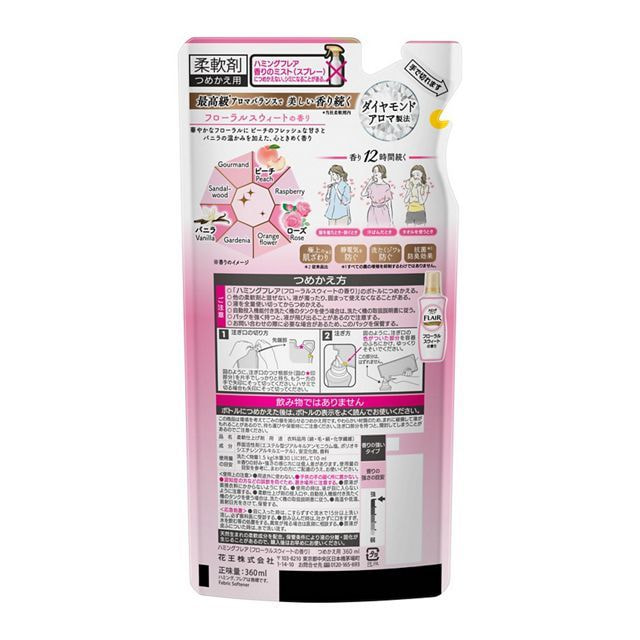 KAO "Flair Fragrance Floral Sweet" Кондиционер-смягчитель для белья, со сладким цветочно-фруктовым ароматом, сменная упаковка, 360 мл.