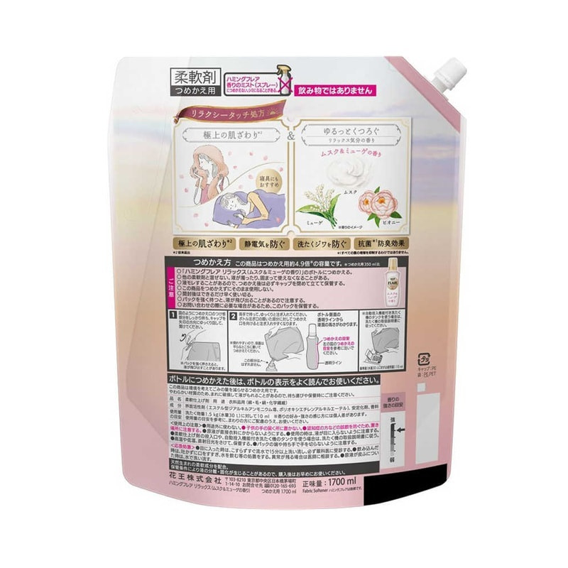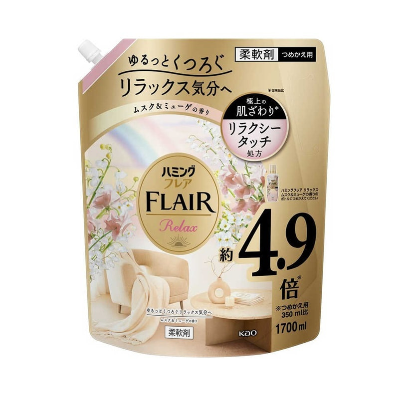 KAO "Flair Fragrance Relax" Кондиционер для белья концентрированный, с ароматом мускуса и ландыша, сменная упаковка, 1700 мл.
