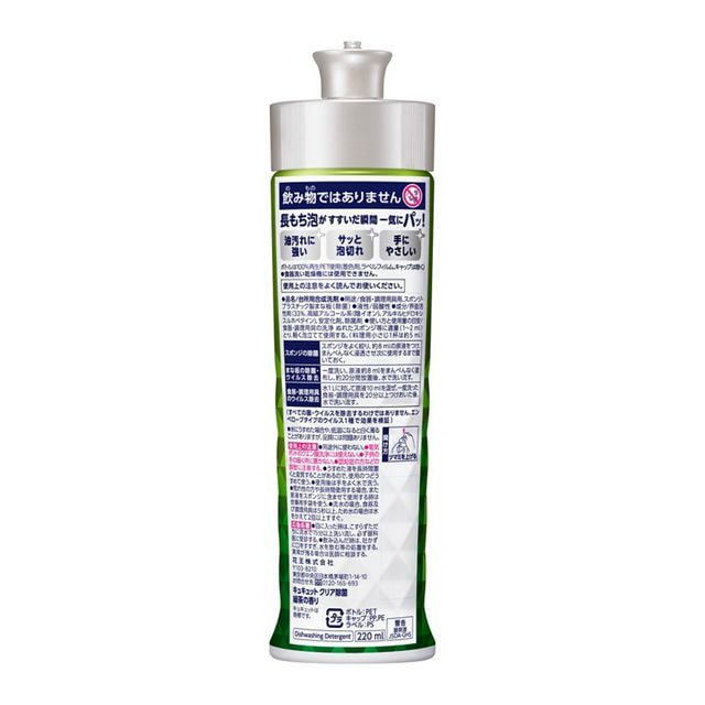 KAO "CuCute" Дезинфицирующее средство для мытья посуды, овощей и фруктов, с ароматом зеленого чая, 220 мл.