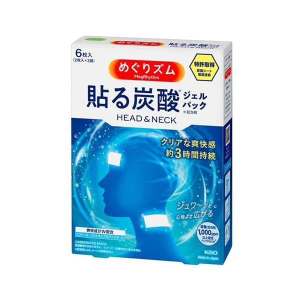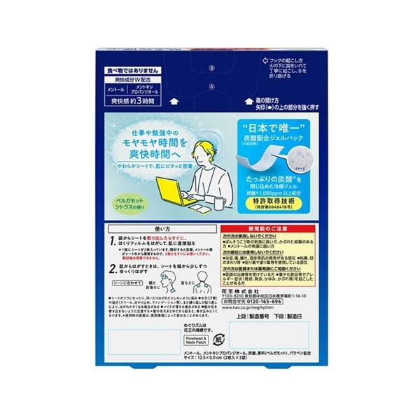 KAO "MegRhythm" Охлаждающий пластырь с угольной кислотой для головы и шеи, с ароматом бергамота и цитруса, 6 шт.