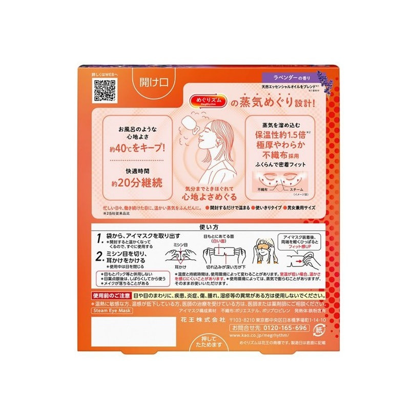 KAO "MegRhythm" Паровая маска для глаз с ароматом лаванды и шалфея, 5 шт.