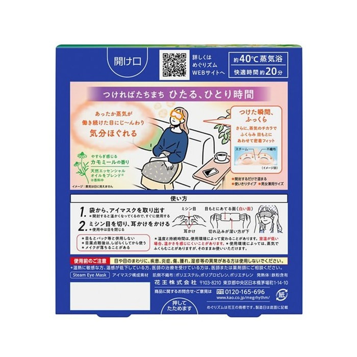 KAO "MegRhythm" Паровая маска для глаз с ароматом ромашки, 5 шт.