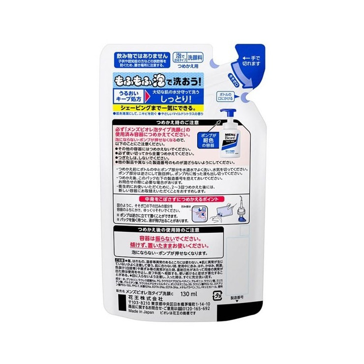 KAO "Men's Biore Foam" Мужская пенка для умывания и бритья, с мягким цитрусовым ароматом, сменная упаковка, 130 мл.