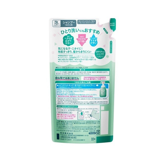 KAO "Merit kid’s Нежность" Детский шампунь-пенка с натуральными экстрактами, без силиконов, цветочный аромат, сменная упаковка, 270 мл.