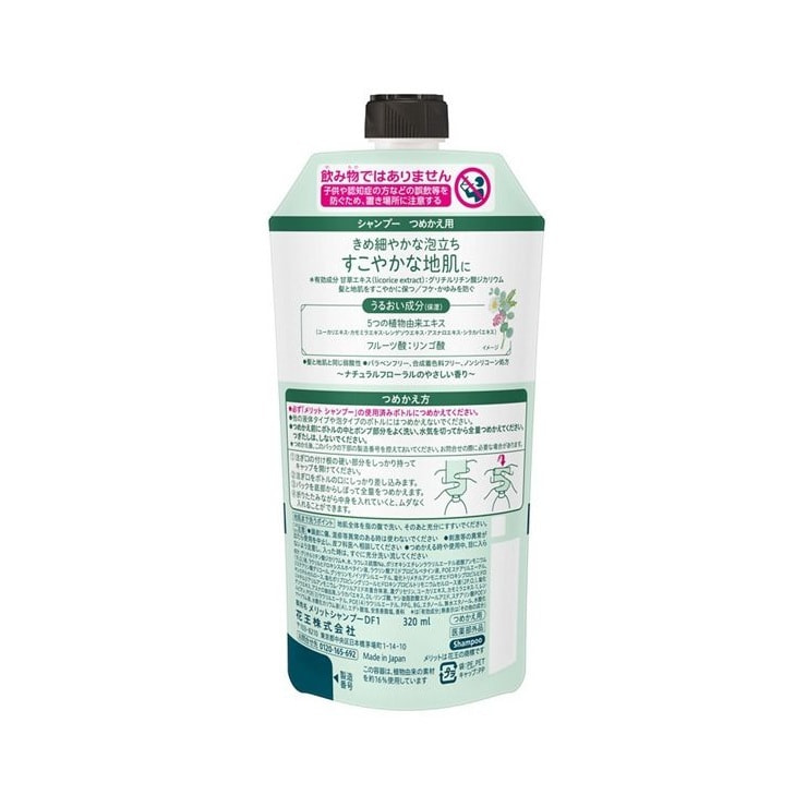 KAO "Merit" Успокаивающий шампунь для чувствительной кожи головы, склонной к перхоти и зуду, без силиконов, с легким ароматом цветов, сменная упаковка, 320 мл.