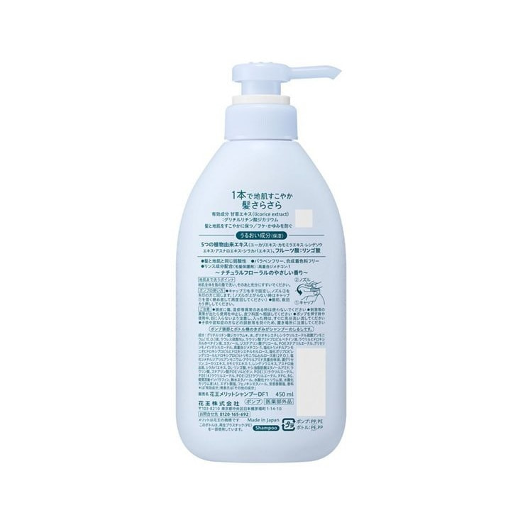 KAO "Merit" Увлажняющий шампунь-кондиционер 2-в-1, для кожи головы, склонной к перхоти и зуду, с легким цветочным ароматом, 450 мл.