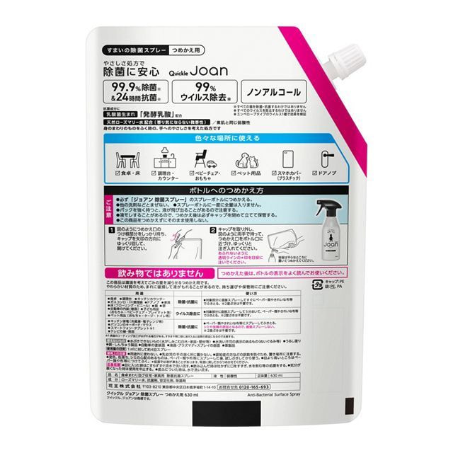 KAO "Quick le Joan" Дезинфицирующий спрей для любых поверхностей, на основе розмариновой воды, сменная упаковка, 630 мл.