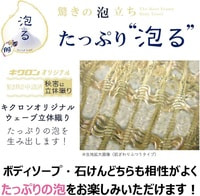 Особая структура плетения волокон создаёт густую пену даже при минимальном количестве геля или мыла, экономя средства для душа.