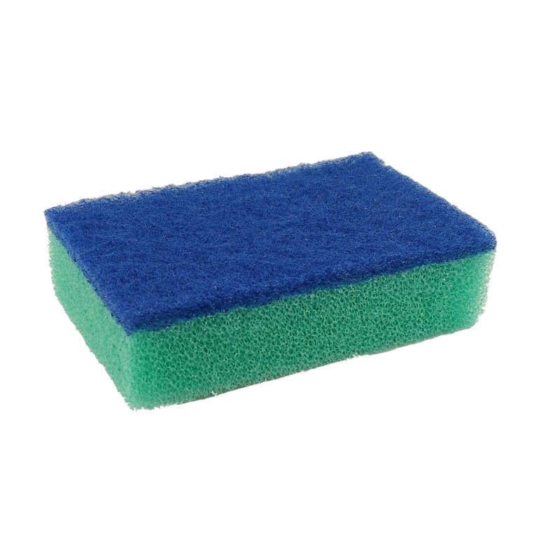 - Прочный и долговечный жесткий нетканый верхний слой отлично удаляет стойкие загрязнения, полирует поверхность посуды.
