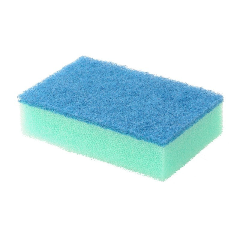 - Прочный и долговечный жесткий нетканый верхний слой отлично удаляет стойкие загрязнения, полирует поверхность посуды.