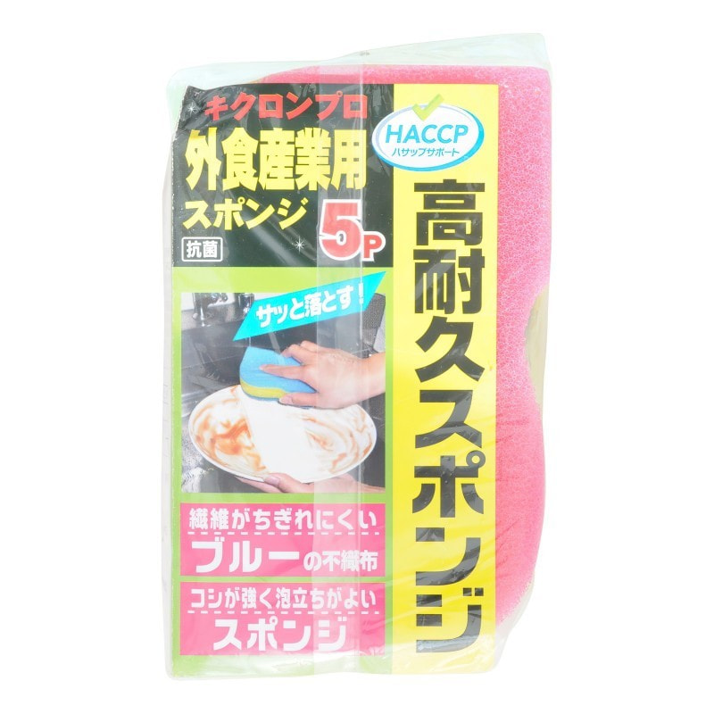 Kikulon "Pro Sponge 5P S" Профессиональная губка для посуды с антибактериальной пропиткой, трехслойная S-образная, жесткий верхний слой, 11x7x3,5 см, 5 шт в упаковке.