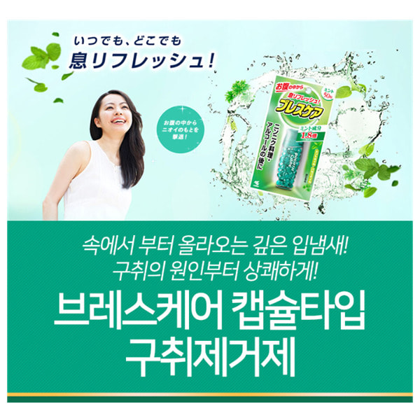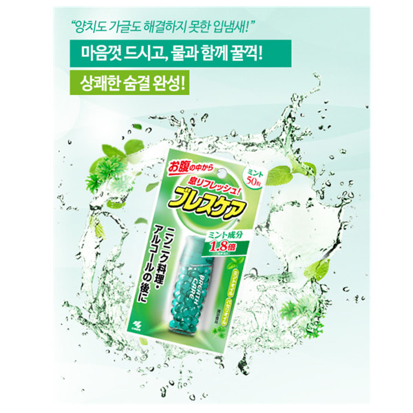 Kobayashi "Breath Care Mint" Освежитель дыхания в капсулах с маслами мяты и петрушки, вкус мяты, 2 упаковки по 50 шт.