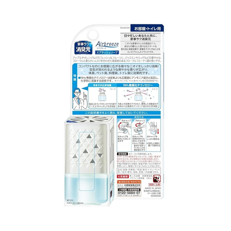 Kobayashi "Shoshugen Airbreeze" Жидкий освежитель воздуха с дезодорирующим эффектом, с ароматом цветочного мыла, 59 мл.