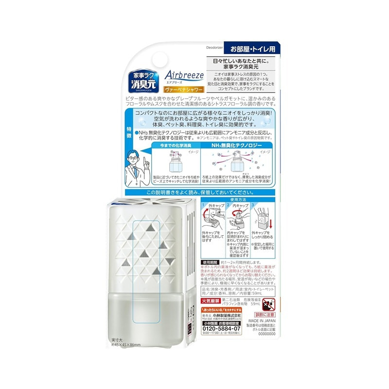 Kobayashi "Shoshugen Airbreeze" Жидкий освежитель воздуха с дезодорирующим эффектом, с ароматом вербены и цитруса, 59 мл.