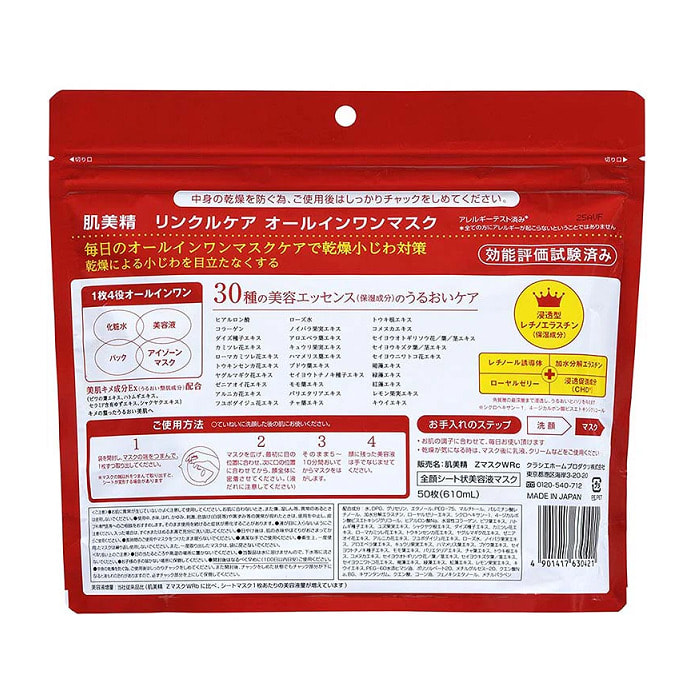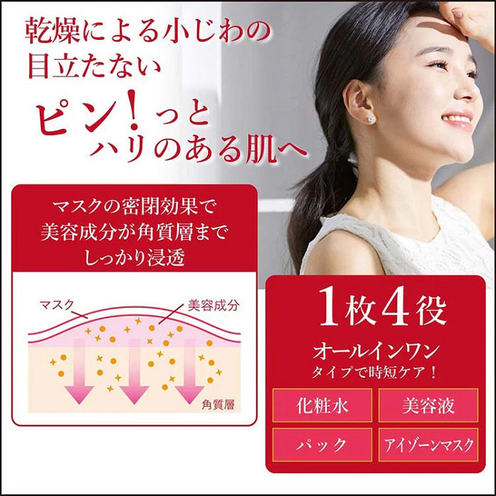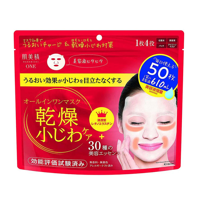 Kracie "Hadabisei One Wrinkle Care All-in-one Mask" Маска для лица против мелких морщин с ретинолом и коллагеном, без аромата, 50 шт.