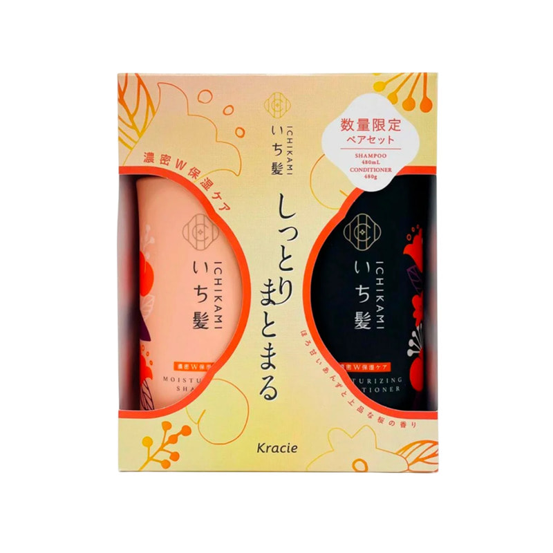 Kracie "Ichikami Double Moisturizing Care" Набор для восстановления окрашенных волос, аромат абрикоса и вишни, шампунь 480 мл. + кондиционер 480 мл.