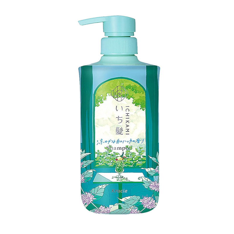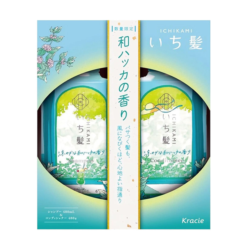 Kracie "Ichikami Pair Set Japanese Mint Scent" Набор для восстановления поврежденных волос с ароматом японской мяты, шампунь 480 мл.+ кондиционер 480 г.