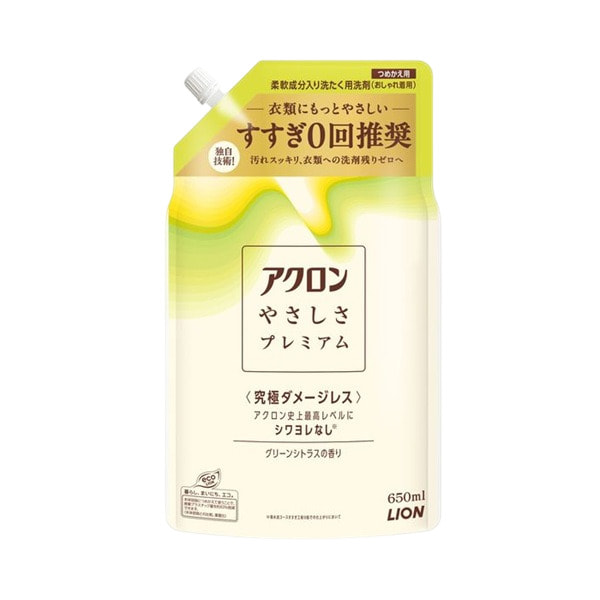 Lion "Acron Yasashisa Premium" Жидкое средство для стирки деликатных тканей, с ароматом зеленых цитрусовых, 650 мл.