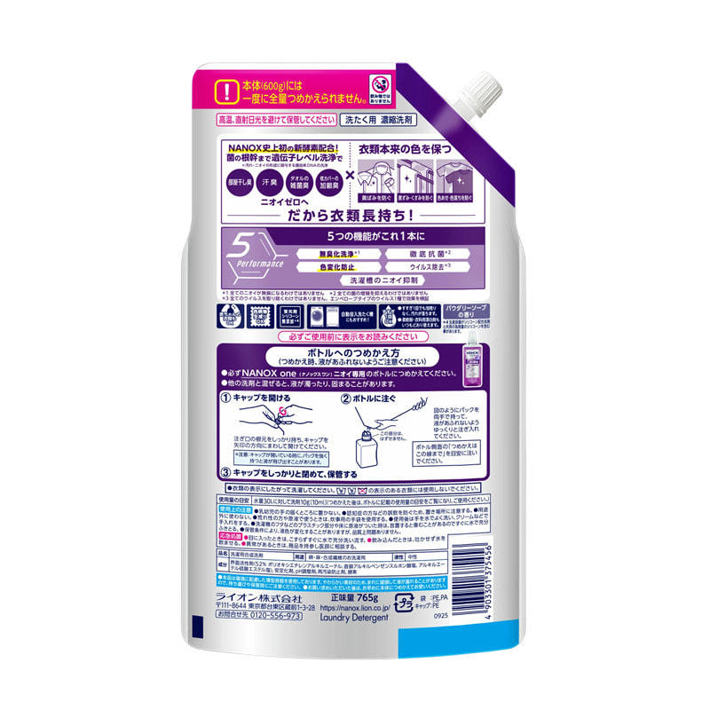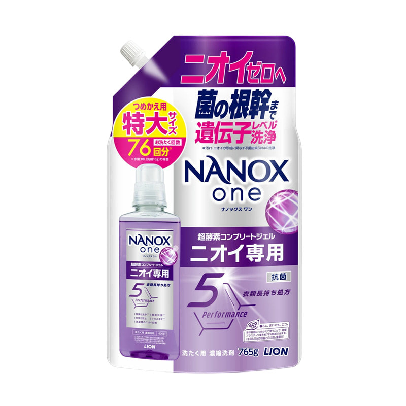 Lion "Nanox One" Высококонцентрированное жидкое средство для стирки белья, против стойких загрязнений, неприятных запахов и изменений цвета, сменная упаковка, 765 г.