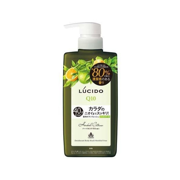Mandom "Lucido Deodorant Body Wash Nonmenthol Herbal Citrus" Лечебный дезодорант-гель для душа мужской 40 +, без ментола, с ароматом трав и цитрусов, 450 мл.