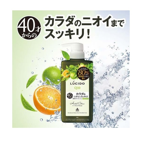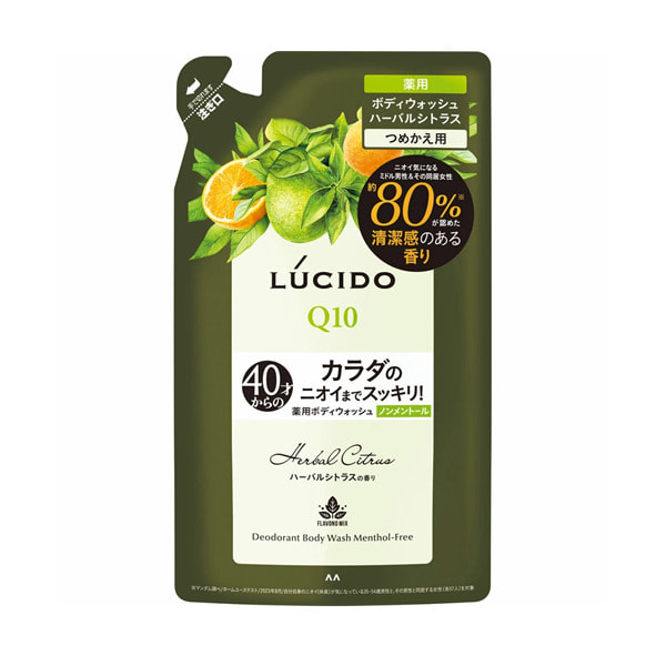 Mandom "Lucido Deodorant Body Wash Nonmenthol Herbal Citrus" Лечебный дезодорант-гель для душа мужской 40 +, без ментола, с ароматом трав и цитрусов, сменная упаковка,380 мл.