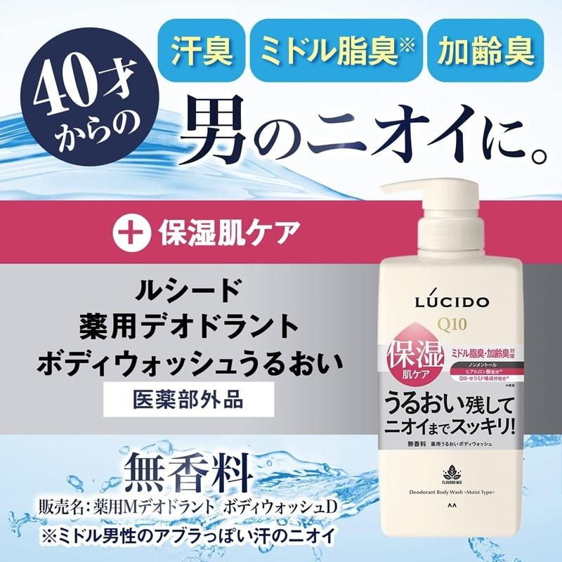 Mandom "Lucido Deodorant Moisturizing" Лечебный дезодорант-гель для душа для устранения неприятного запаха с флавоноидами, для мужчин после 40 лет, без аромата, 450 мл.