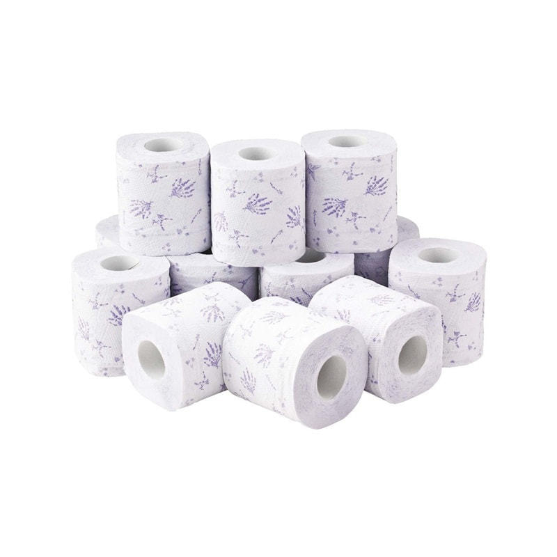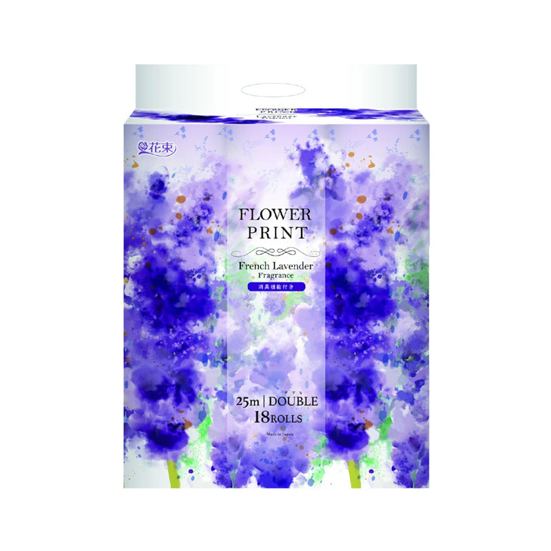 Marutomi "Tissue Hanataba Flower Print French Lavender Double" Туалетная бумага двухслойная с оригинальным цветочным принтом, с ароматом французской лаванды, 18 рулонов по 25 м.