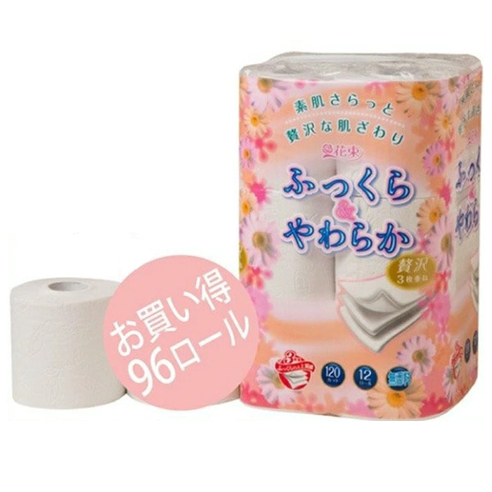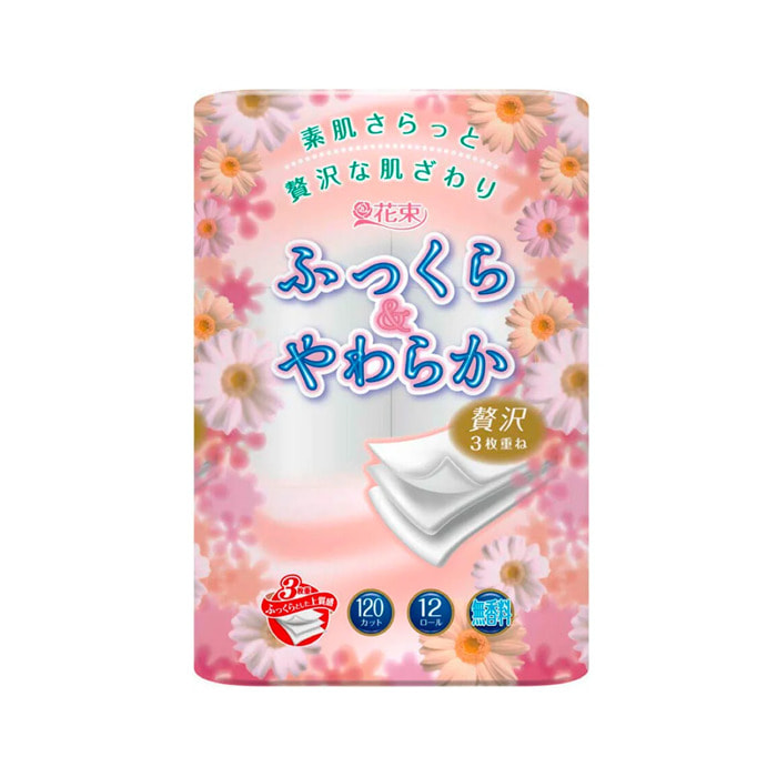 Marutomi "Tissue Hanataba Fluffy and Soft Triple" Туалетная бумага трехслойная с тиснением, без аромата, 12 рулонов по 18 м.