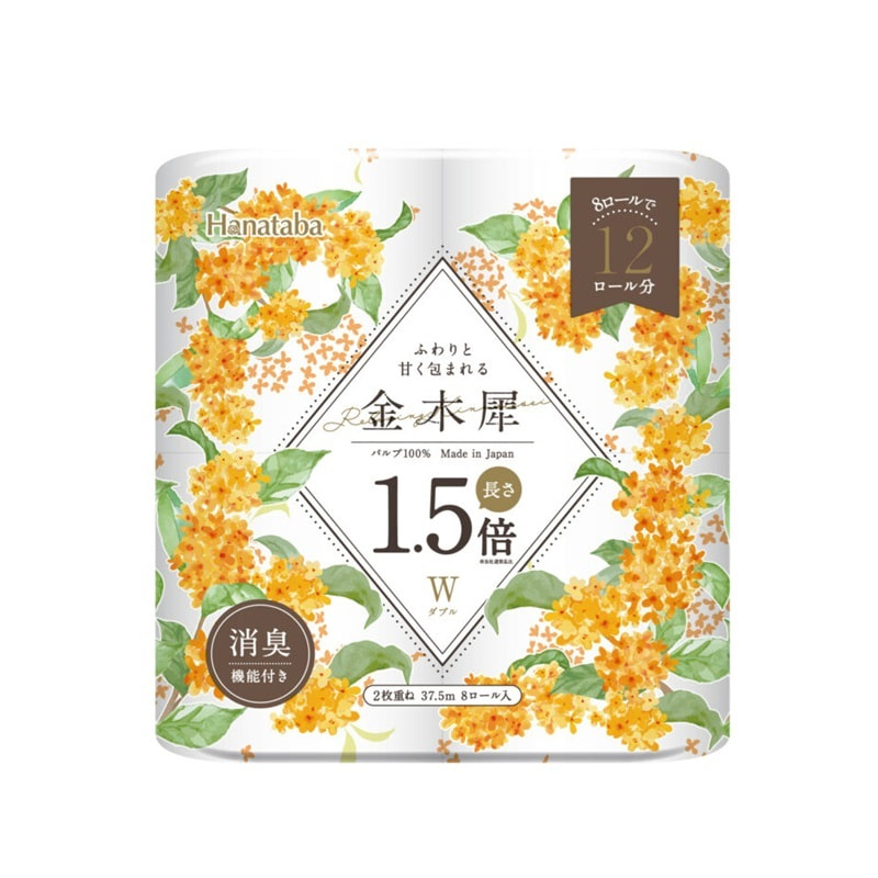 Marutomi "Tissue Hanataba Osmanthus" Двухслойная туалетная бумага увеличенной длины, с теснением, с ароматом османтуса, 8 рулонов по 37,5 м.