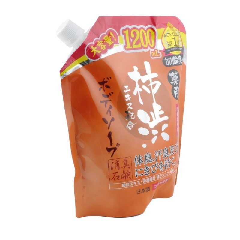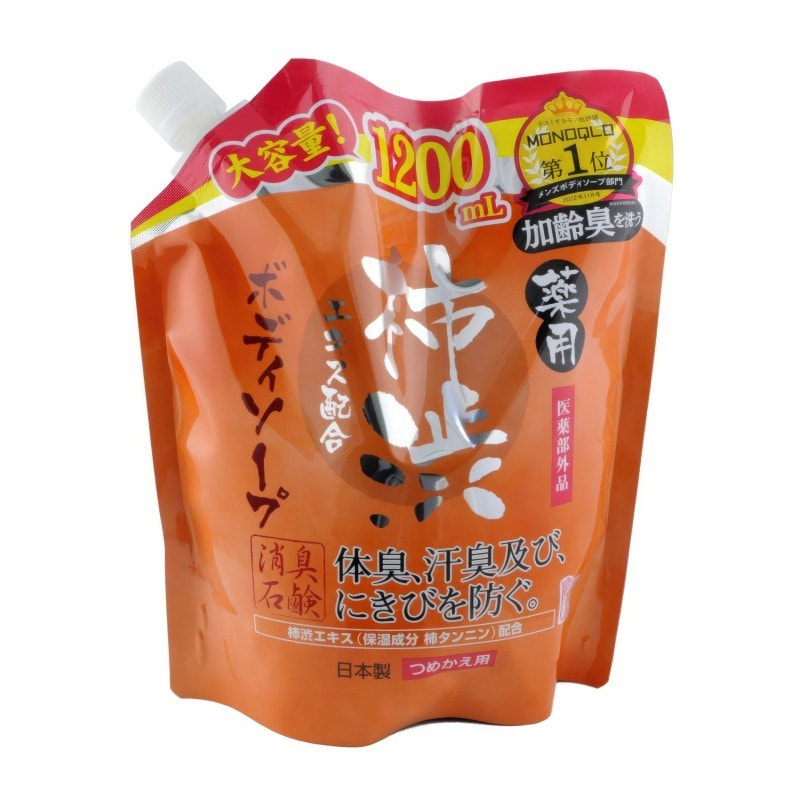 MAX "Taiyounosachi Ex Body Soap" Жидкое мыло для тела с экстрактом хурмы, дезодорирующее и освежающее, сменная упаковка, 1200 мл.