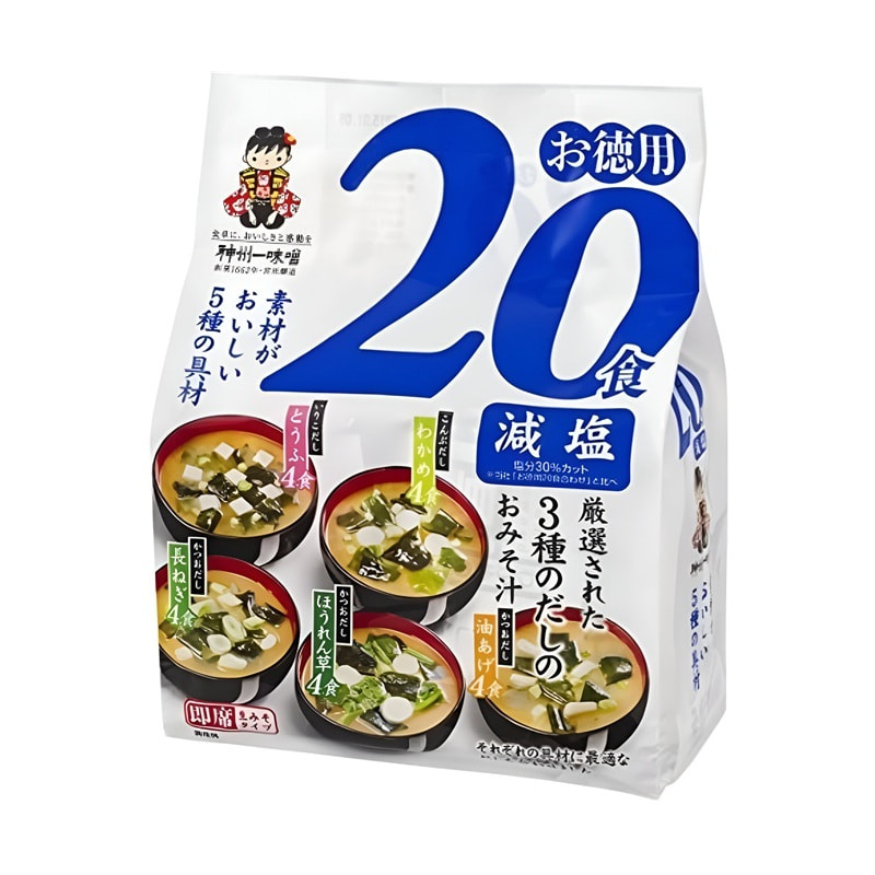 Оставить отзывОтзывы - Miyasaka Jozo "Ассорти 5 вкусов" Мисо-суп с белой пастой мисо, с пониженным содержанием соли, 20 порций.